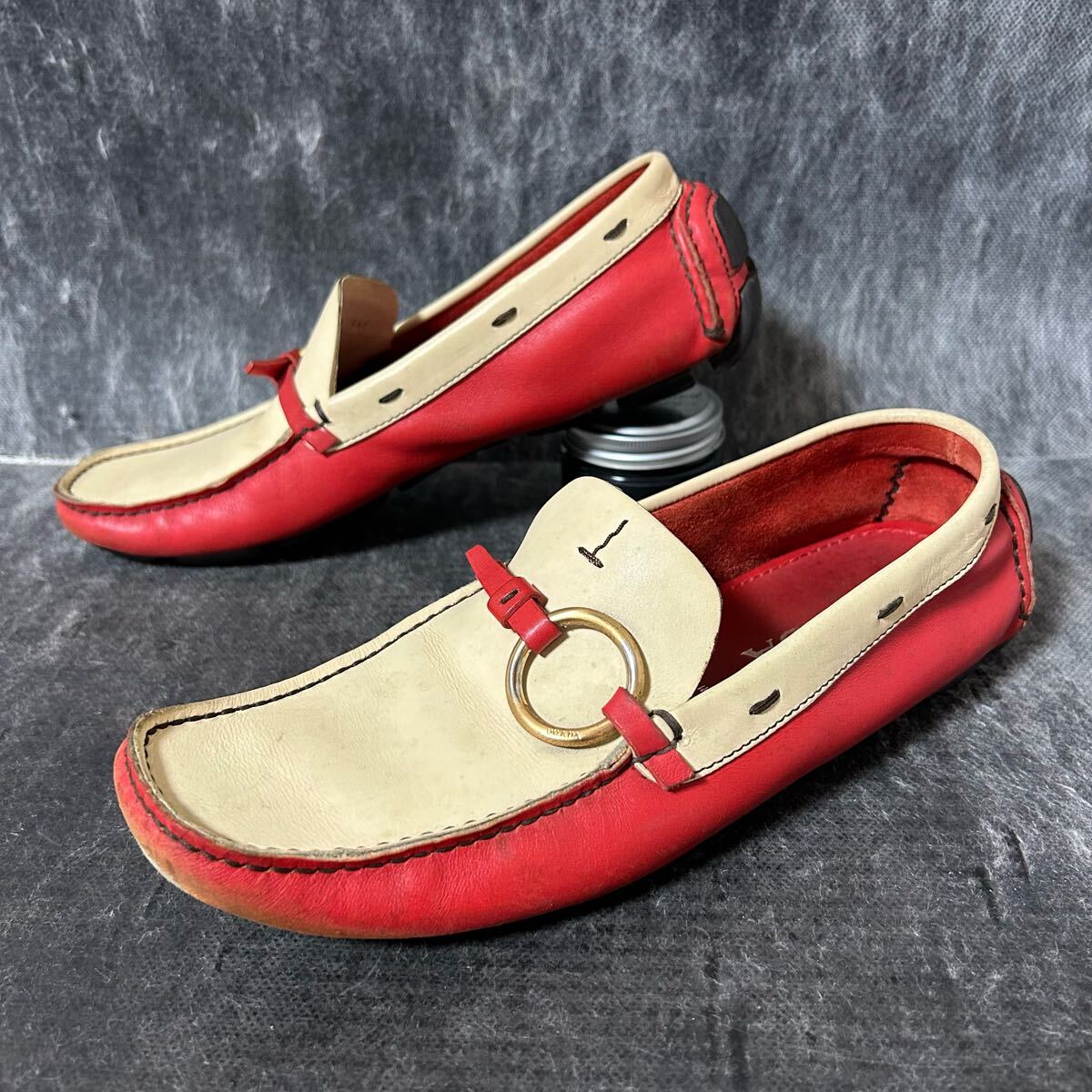 - PRADA プラダ ドライビングシューズ レザー スリッポン バイカラー 361/2 23.5cm相当 ベージュ レッド *EU