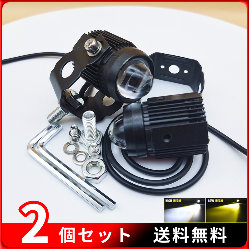 - 2個セット バイク フォグランプ 12V ホワイト+イエロー切替 LEDバイクヘッドライト 補助ライト 汎用車外灯 建築照明器具 夜釣り 漁業作業