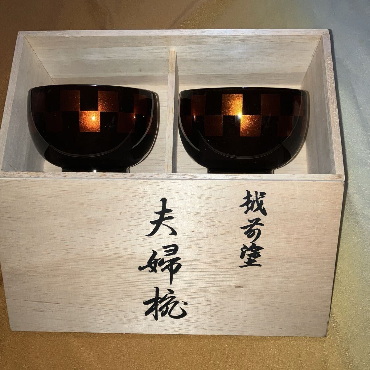 - 越前 漆器 市松駒形 木箱入り夫婦汁椀(ペア) (内側 朱・黒)塗