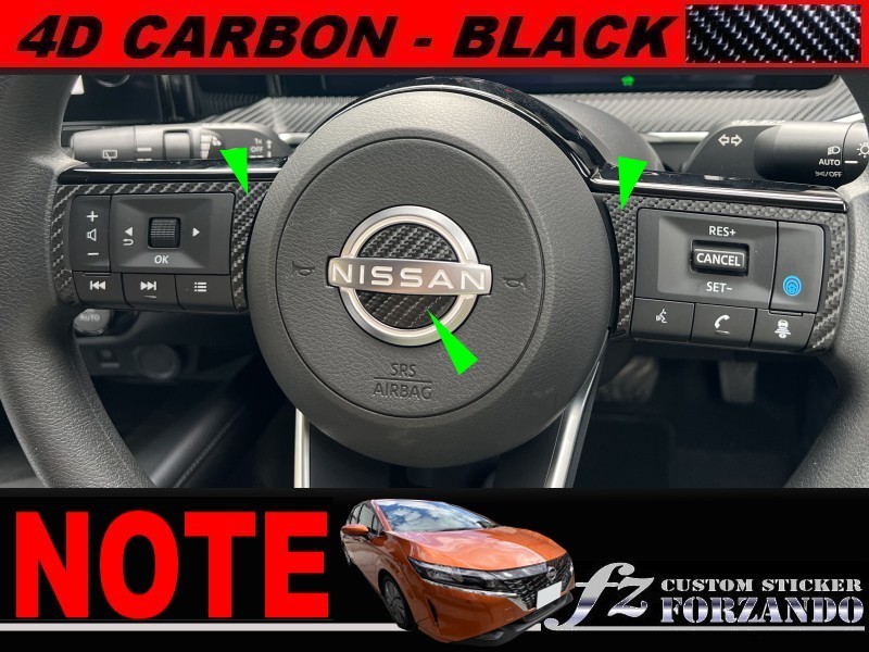 > ノート E13 ステアリングパネルカバー1 4Dカーボン調ブラック 車種別カット済みステッカー専門店fz FE13 オーラ