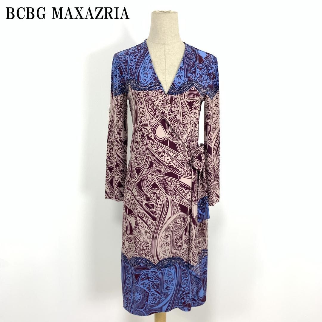 - LA7355 ビーシービージーマックスアズリア BCBG MAXAZRIA 総柄 巻きスカートワンピース ポリエステル長袖ワンピース ベージュ系 XS