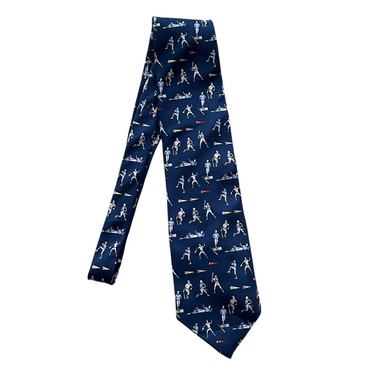 - USA製 90’s〜 Pursuits ネクタイ 野球 総柄 ネイビー シルク アメリカ製 1990年代