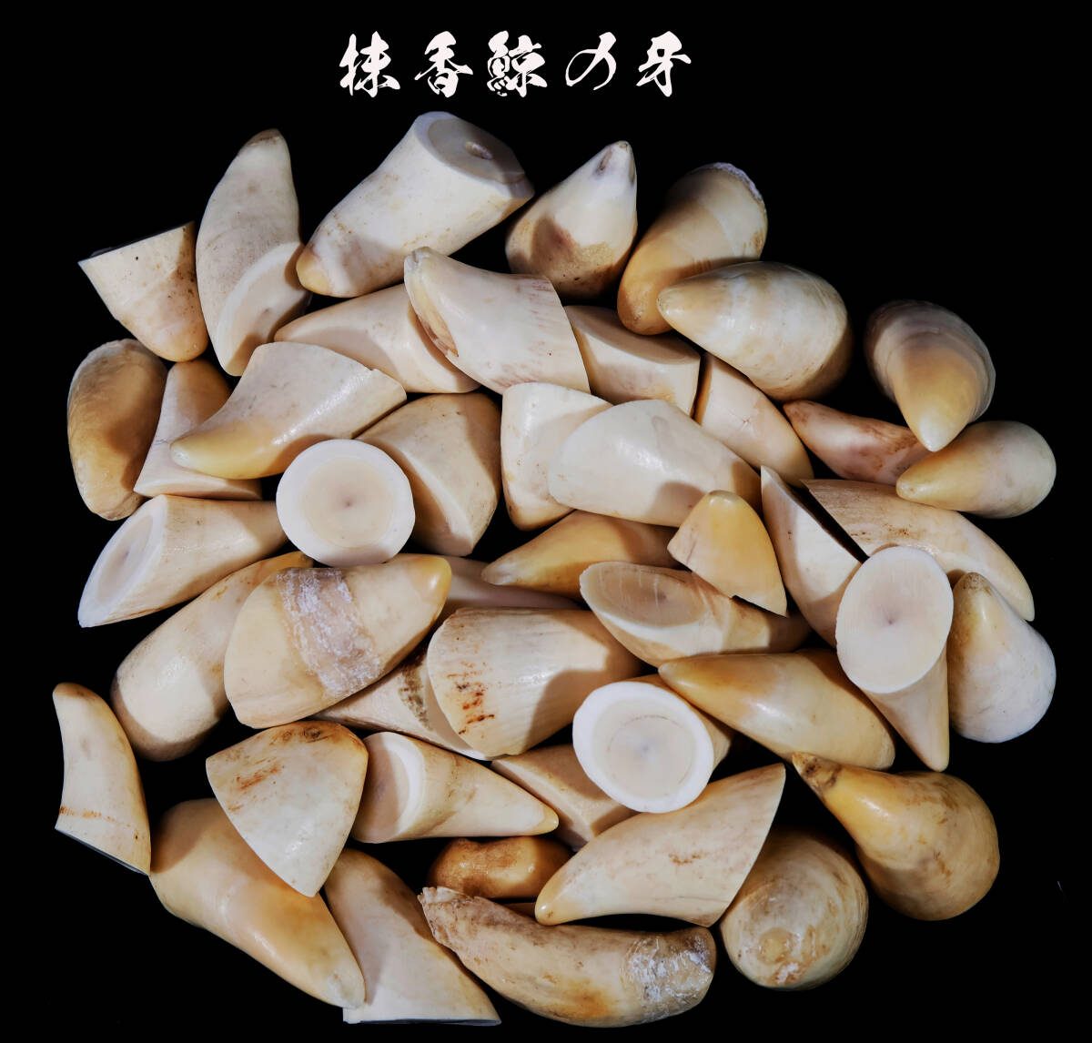 - 抹香鯨 鯨歯 稀有な部位 マッコウクジラの牙 まとめて46個 古美術 彫刻材 根付 揚物 ペンダント 天然素材