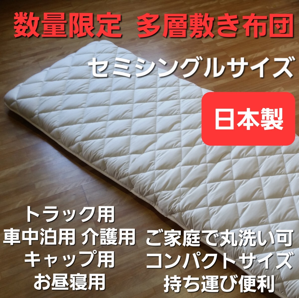 - 数量限定 敷き布団 セミシングルサイズ 洗濯可 日本製 トラック用 介護用 キャップ用 お昼寝用 (羽毛布団 掛け布団 敷き布団 枕)出品中