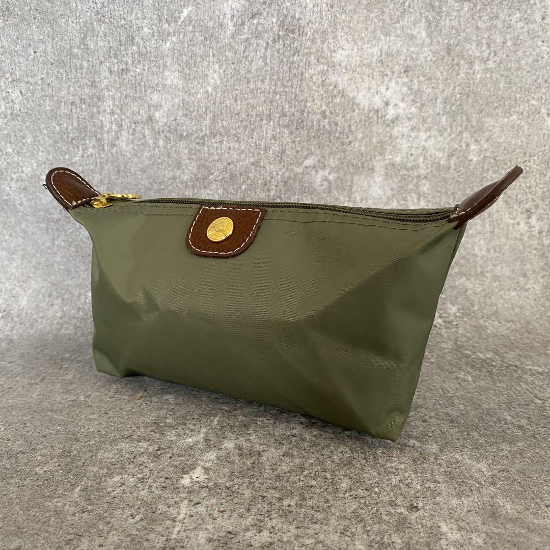 - ロンシャン ポーチ 化粧 レザー ナイロン ルプリアージュ カーキ