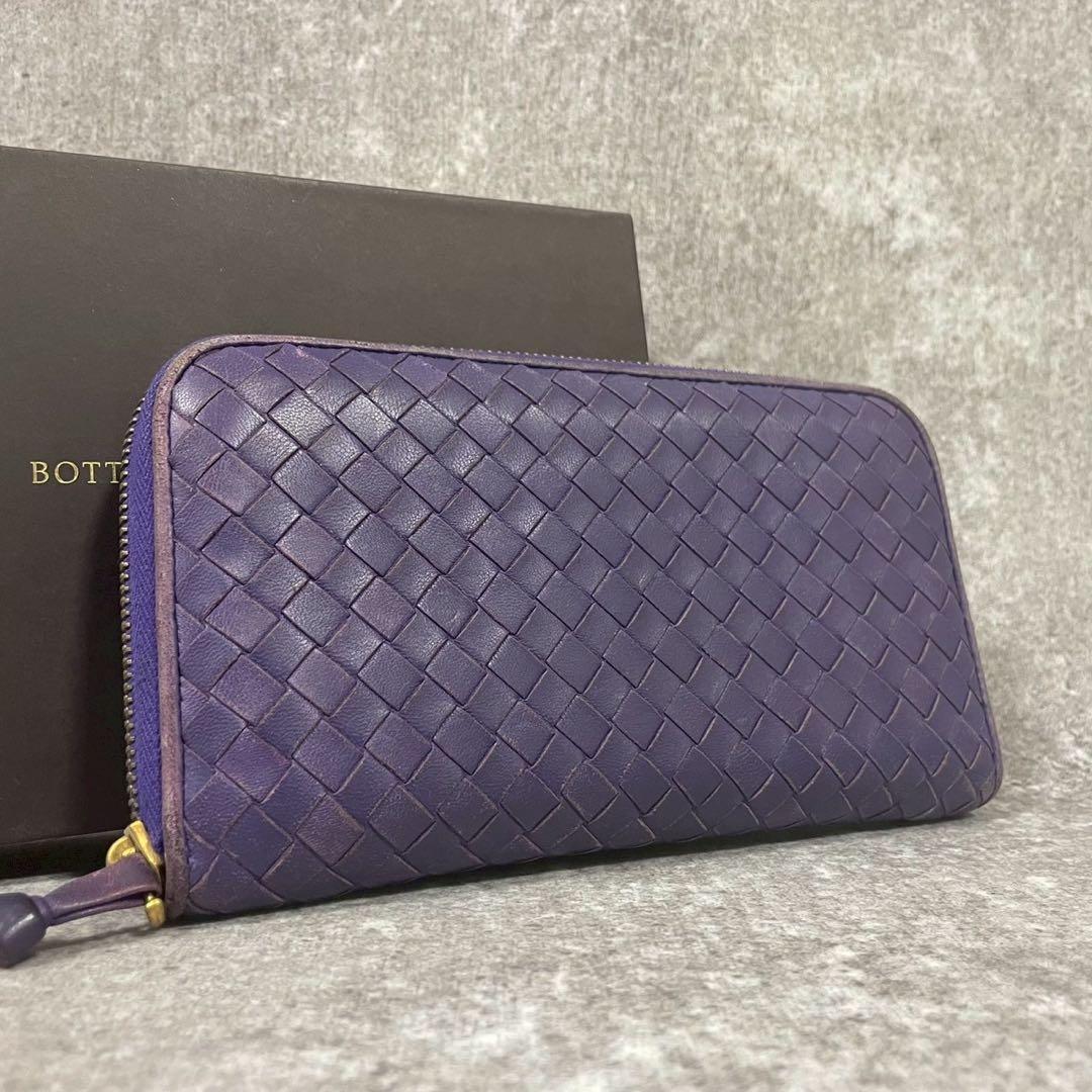 > ボッテガヴェネタ 長財布 ラウンドファスナー レザー イントレ パープル 紫