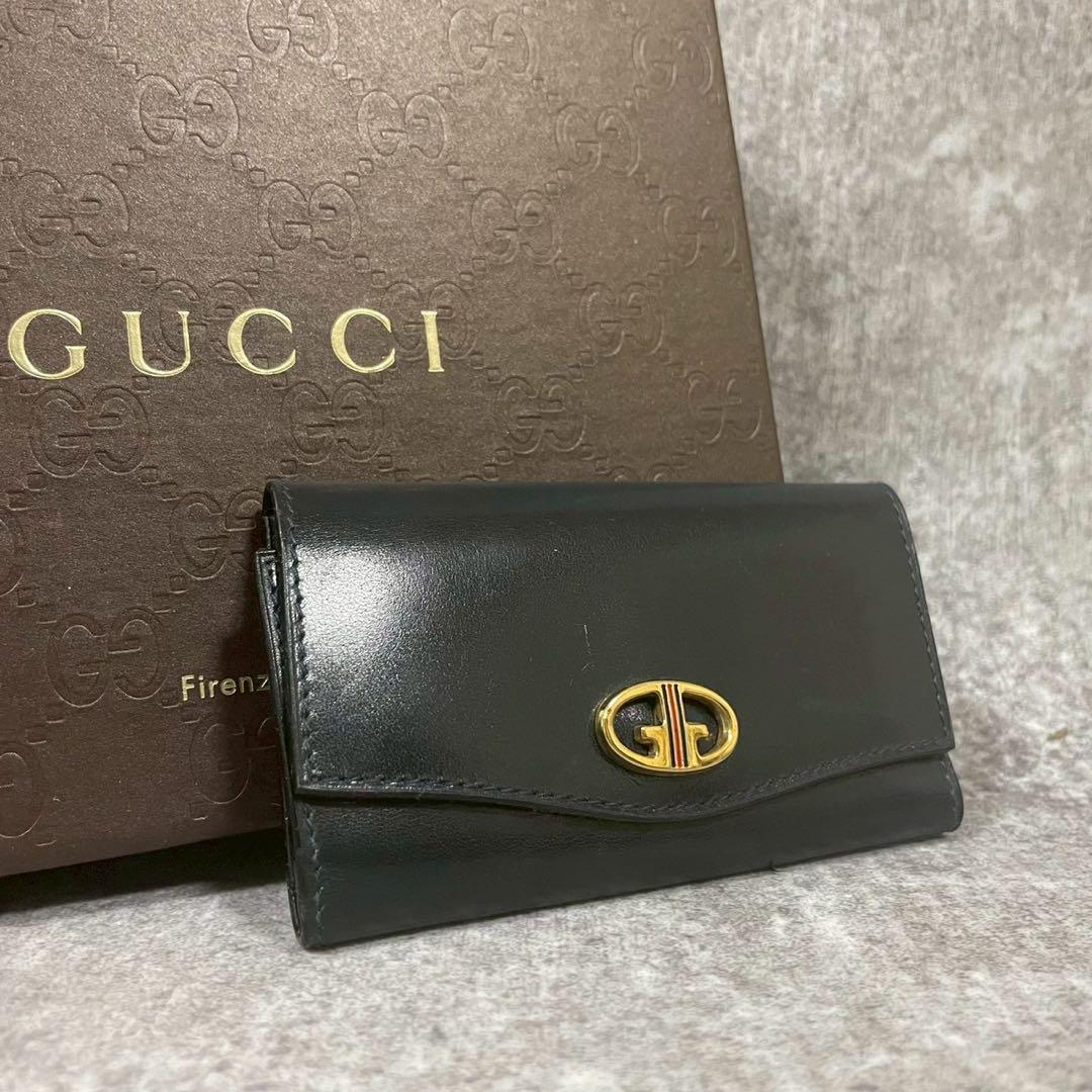 - GUCCI オールドグッチ キーケース マイクロGG ブラック ロゴ レザー