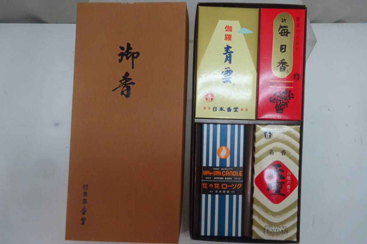 - ★お線香ギフトセット・日本香堂 お線香3箱、ローソク1箱 ※未使用/長期保管現状品■60