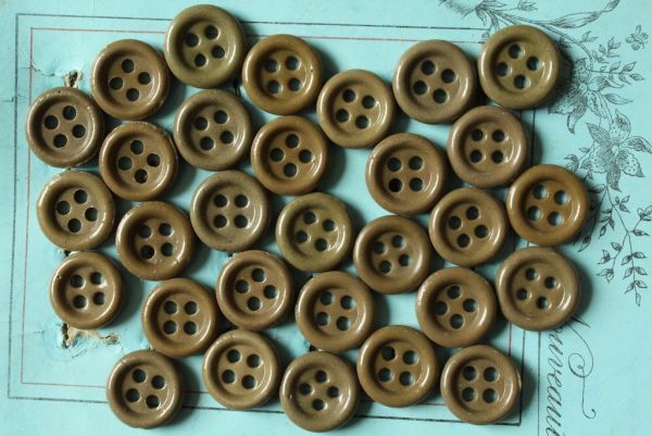 - 即決 ガラスボタン 30個 φ13~14mm アソート 4穴 カーキブラウン オリーブブラウン フランス輸入 ヴィンテージ