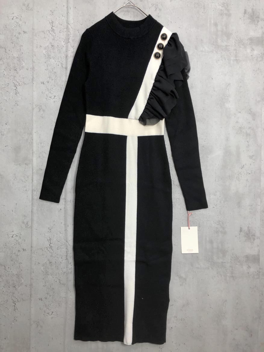 - 展示品■eimy istoire エイミーイストワール 1120531668-0 EM pearl シフォンフリル ワンピース sizeF/黒 ◆■◎ ☆ fja8 レディース