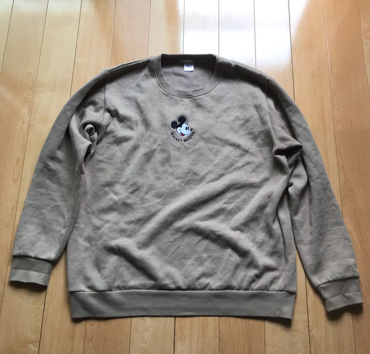 - ディズニー ミッキープリント スウェットトレーナー 133-1-331 メンズ L ベージュ