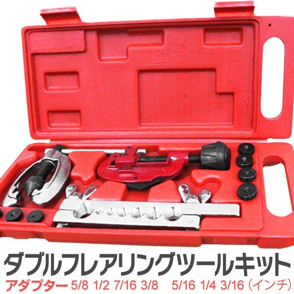 - ダブルフレアリングツール キット フレア加工 アダプター 7種類 カーエアコン ルームエアコン 冷媒対応 工具 パイプ切断 バリ取り 加工