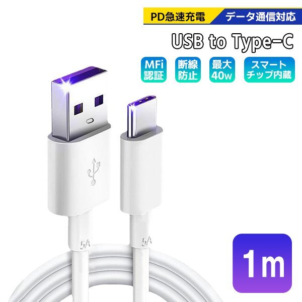 > [7]USB Type-A to Type-C ケーブル 1m 1本 PD急速充電 データ転送対応 スマホ iPhone15 通信 充電コード 高速充電 ゲーム機 スイッチ TypeA