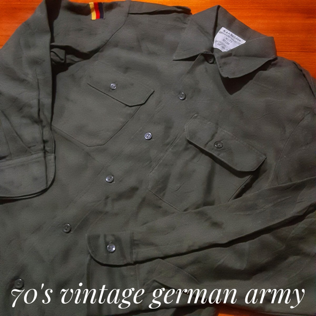 - 最値!希少70'sヴィンテージ!R&Aベッカー社製!ドイツ軍 ミリタリー シャツ ジャケット 軍物!カーキ オリーブ!表記10/79 37/38 Mサイズ相当