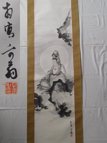 - 【模写】掛け軸 観音図 観音様 観音菩薩 仏画 作者不明 在銘 落款 紙本肉筆 人が描いたもの