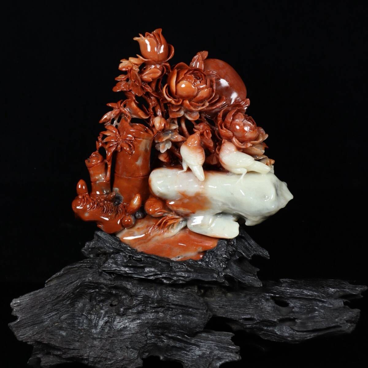 - 旧 清代 寿山石 花鳥擺件 置物 文房具 古賞物 中国古美術 唐物 K710
