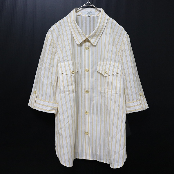 > レリアン Leilian ヴィンテージ シャツ ブラウス トップス ストライプ デザインボタン [a960048]