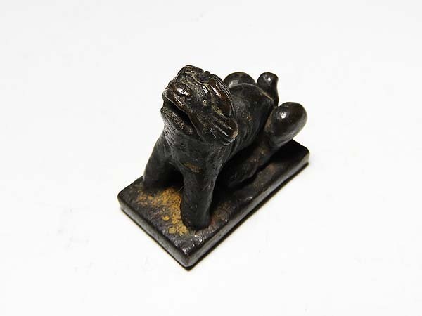 - 【桃】書道文房具:古銅狛犬動印筆架書鎮