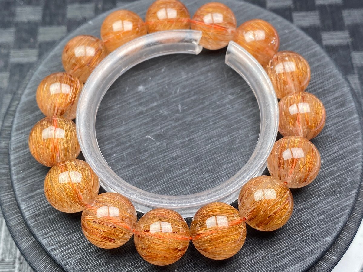 - 即決 0621a251 天然美品★【45A猫目銅髪ルチルクォーツ】★ブレス 14mm(新品)