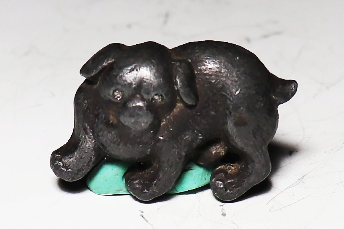 - 【桃】提げ物:金工銀地犬煙草入れ飾り金具