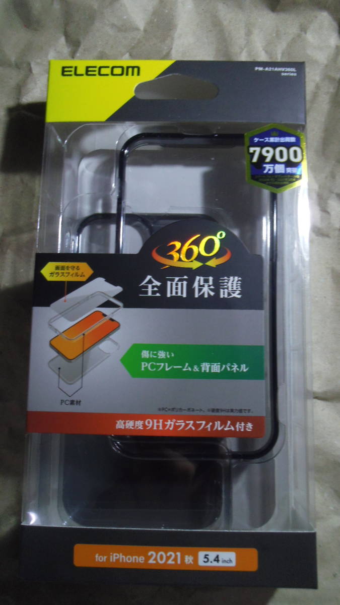 - ELECOM iPhone 13 mini ハイブリッドケース 360度保護 背面ガラス ブラック 前面と背面強化ガラスと側面傷に強いポリカーボネート定形外390