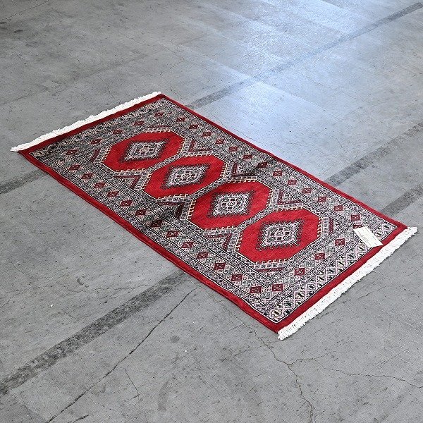 > 新品 未使用 パキスタン製 手織り ウール絨毯 ラグ ボハラ柄 ギュル文様 ハンドノット 羊毛 カーペット マット ホテル 応接室 P-93