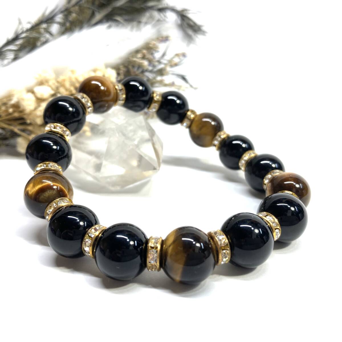 - モリオン&タイガーアイ パワーストーン ブレスレット 天然石ブレス (ゴールド) 12mm 幸運 開運 メンズ 男性