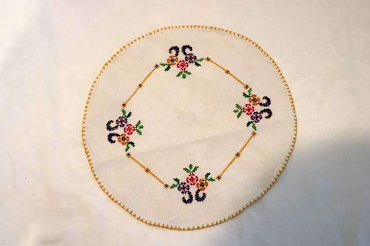 - SALE !! ■ 手刺繍、麻のドイリーL ■