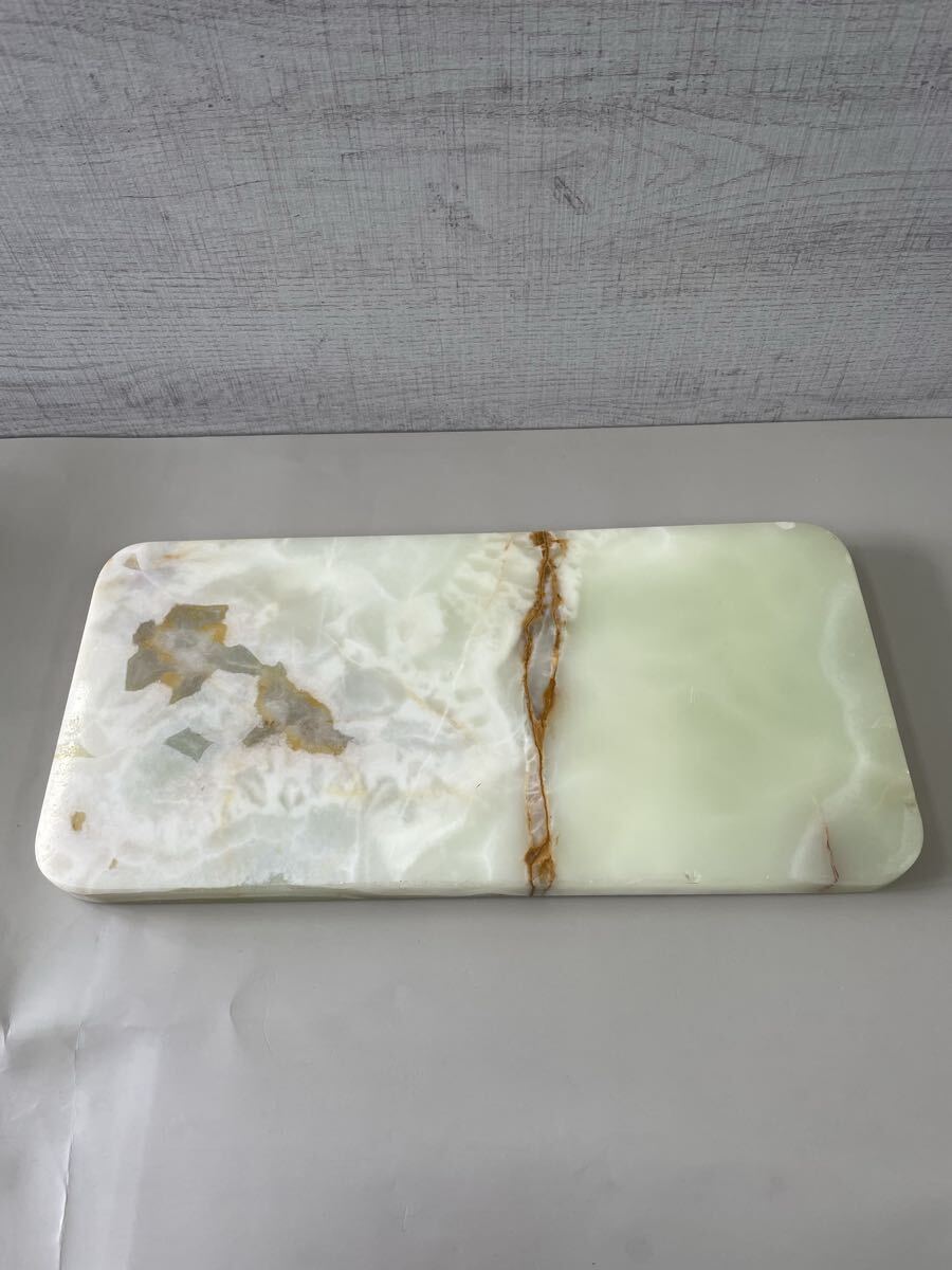 > TA315 大理石プレート 台座 約36.5×17.8cm 重量約3.4kg 灰皿置き台 花台 彫刻置台 天然石 インテリア オニキス調 大理石トレイ レトロ