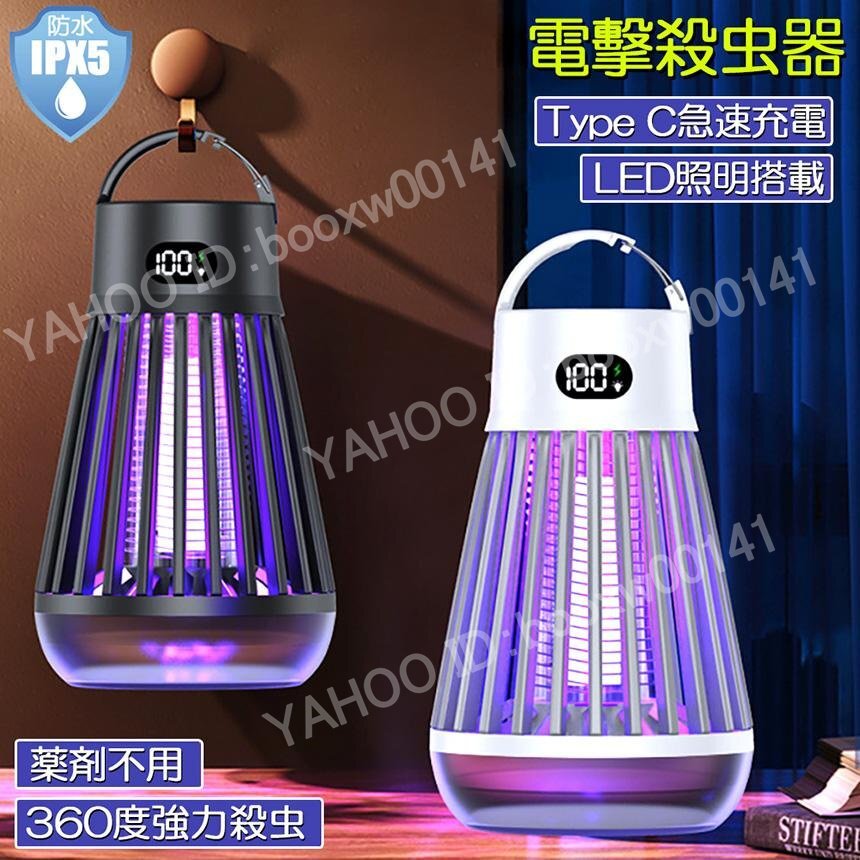 > 電撃殺虫器 電気蚊取り器 捕虫器 UV光源誘引式 照明 ランタン LEDライト 吊り下げ 据え置き USB充電 防水 殺虫ライト カラー:白 hhw0040.1