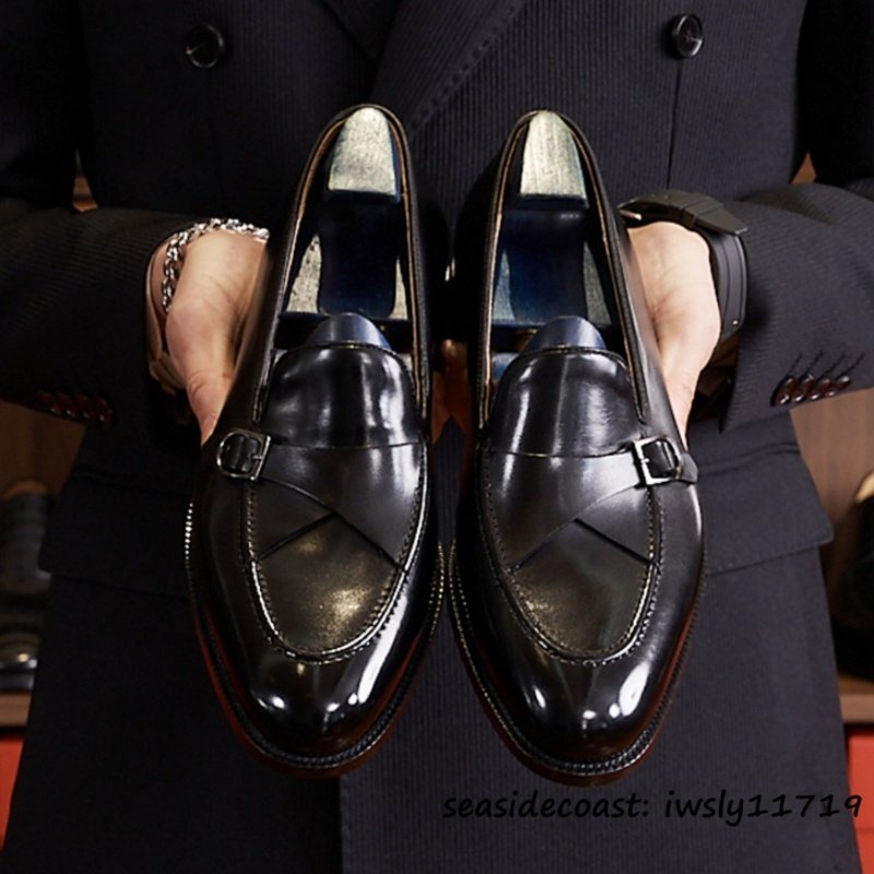 - 極美品◆新品 ビジネスシューズ メンズ 紳士靴 革靴 職人手作り 本革 イタリア レザーシューズ 高級牛革 モンクストラップ ブラック 26.5cm