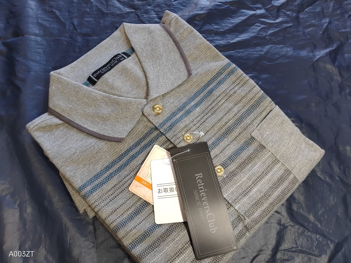 - M寸・新品/アート系ジャガード・ポロシャツ●杢グレー