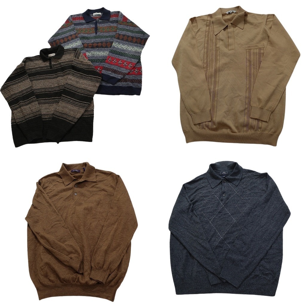 - 古着卸 まとめ売り ニットポロ セーター 5枚セット (メンズ S /M ) 無地 アーガイル柄 ライン 胸ポケット 中古 古着 NC2991 1円スタート