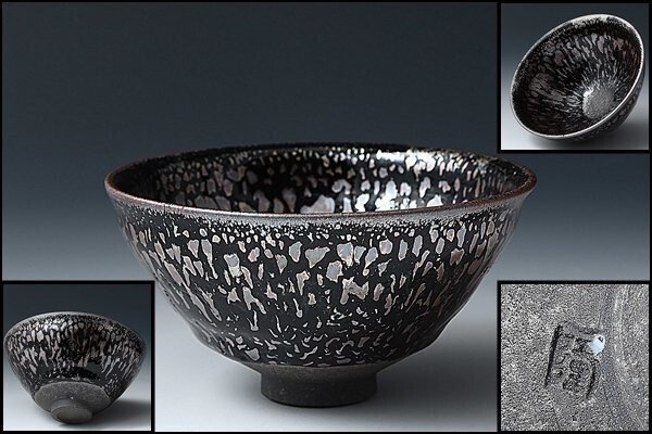 - TB064 木村隆 鉄釉 窯変 油滴 天目 茶碗 /KL