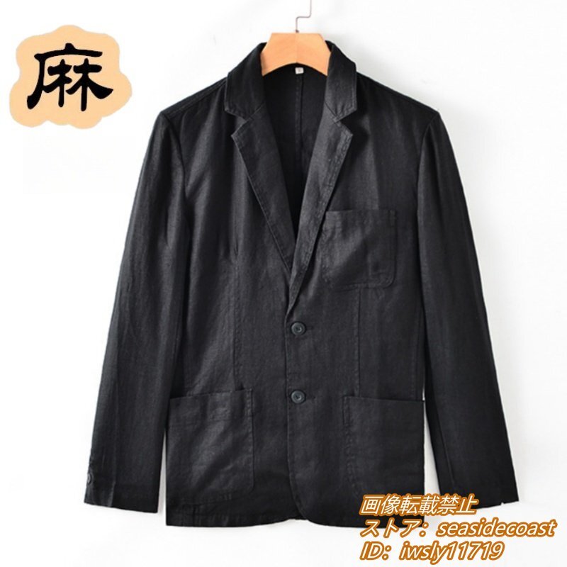 - 極美品★テーラードジャケット メンズ ビジネス リネンジャケット designer*紳士服 ブレザー 背広 上質 春夏秋 通気 清涼感 ブラック 2XL