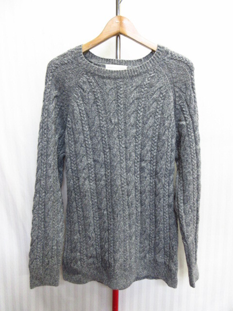 > アーバンリサーチ ケーブルニットセーター メンズ38 グレー ウールセーター フィッシャーマンセーター 編み込みデザインニット 10101