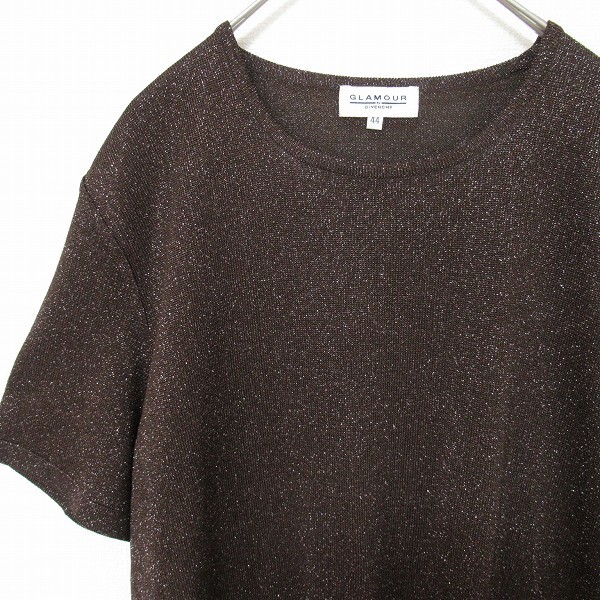 【ブランド】ジバンシイ グラマー GIVENCHY GLAMOUR【アイテム】Tシャツ カットソー【表記サイズ】44【平置き実寸】肩幅:約 40cm袖丈:約 19cm身幅:約 52cm着丈:約 57cm【状態】目立った傷汚れなし【備考】-【色】ブラウン系ラメ【素材】画像をご参照ください。★当店の商品はすべてリユースアイテムとなります。特質上、些細なダメージは記載しておりませんので着用に問題のない使用感、着古した雰囲気などはご了承くださいませ。キーワード/アクイール/古着/used/ビンテージ/ヴィンテージ/昭和/レトロ/ラピーヌ/大きいサイズ/ラージサイズ/プラスサイズ