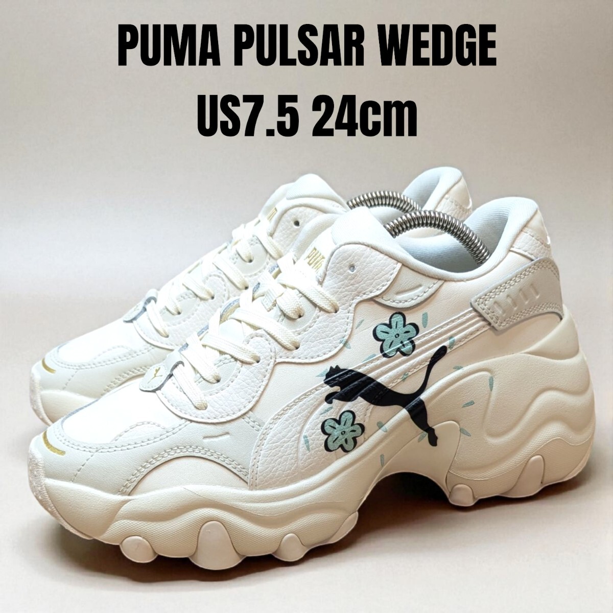 - 美品 PUMA PULSAR WEDGE プーマ パルサーウェッジ 24cm キャットロゴ 厚底スニーカー ホワイト レディーススニーカー PUMA厚底