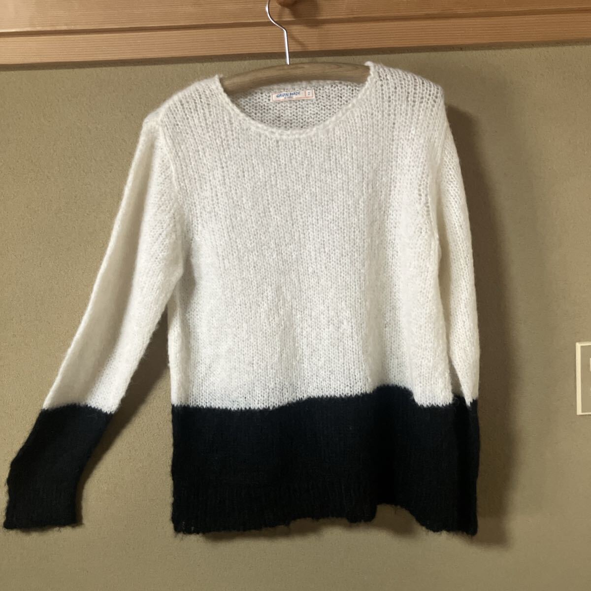 > ガイジンメイド、手編みアルパカモヘアプルオーバーセーター ホワイトxブラック/Mサイズ