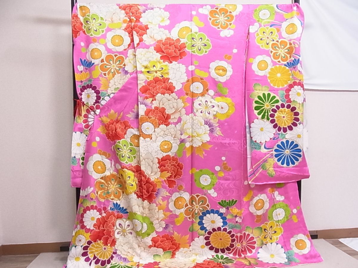 - eふれんず◆振袖 仮絵羽 駒刺繍 吉祥花文 金彩 丹後ちりめん 上代30万 未使用品 正絹 美品◆am2381
