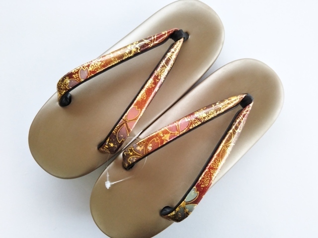 - 和装 草履 レディース R型 小判型 赤茶 金彩 桜 紗織印 Fサイズ 091