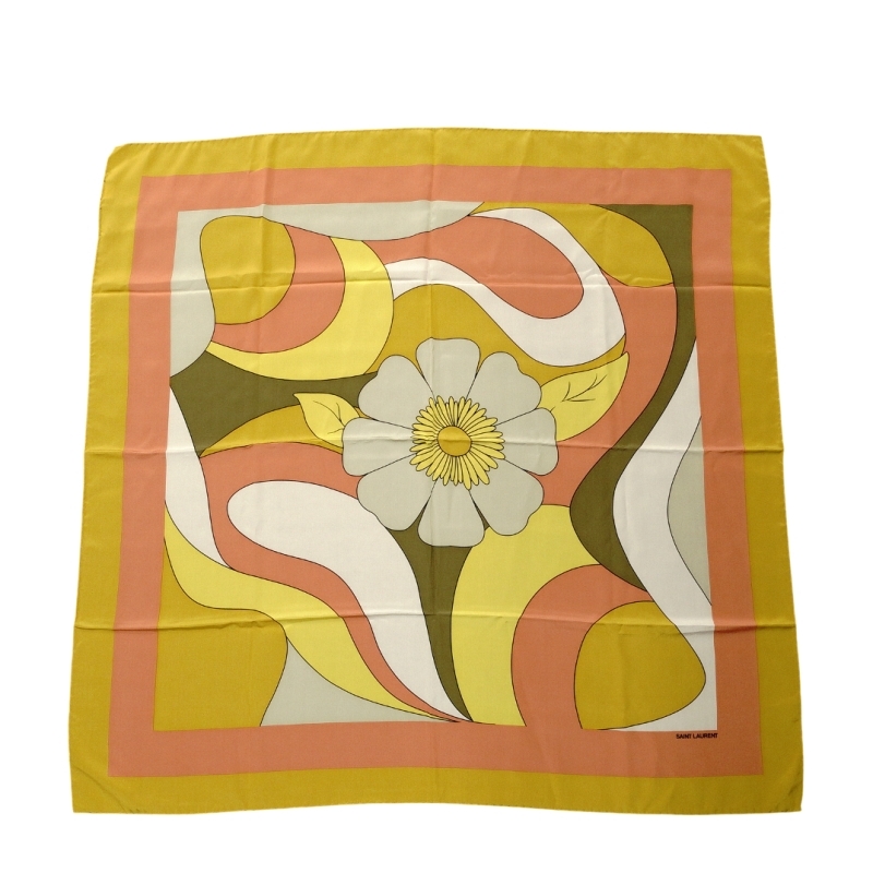 > サンローラン SAINT LAURENT スカーフ 90cm×90cm シルク100% マスタード イエロー ストール 7-9-332