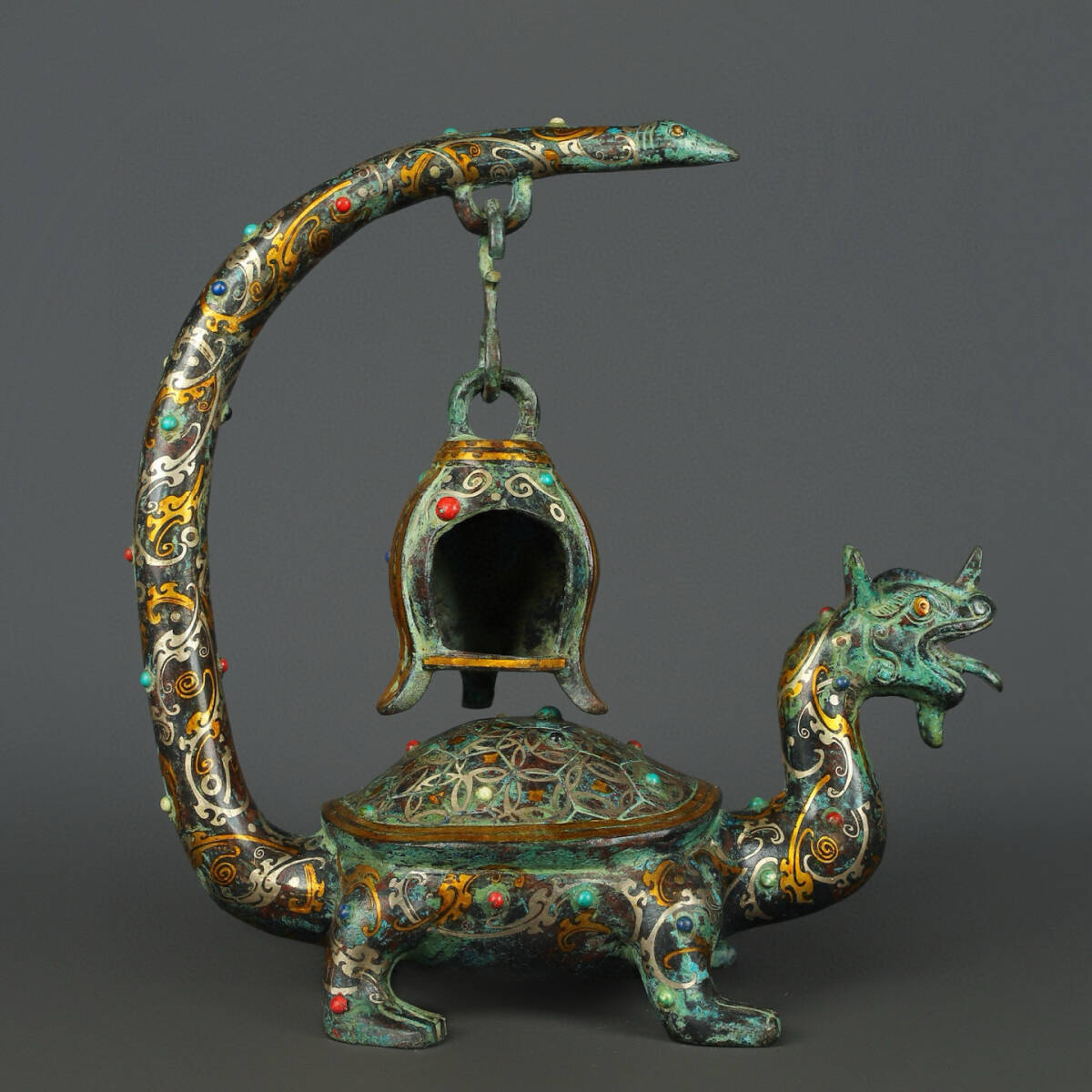 - ▽鴻▽館蔵珍品 漢朝時代 青銅器 錯金銀 象嵌松石龍亀掛鐘 時代物 中国古美術 骨董品