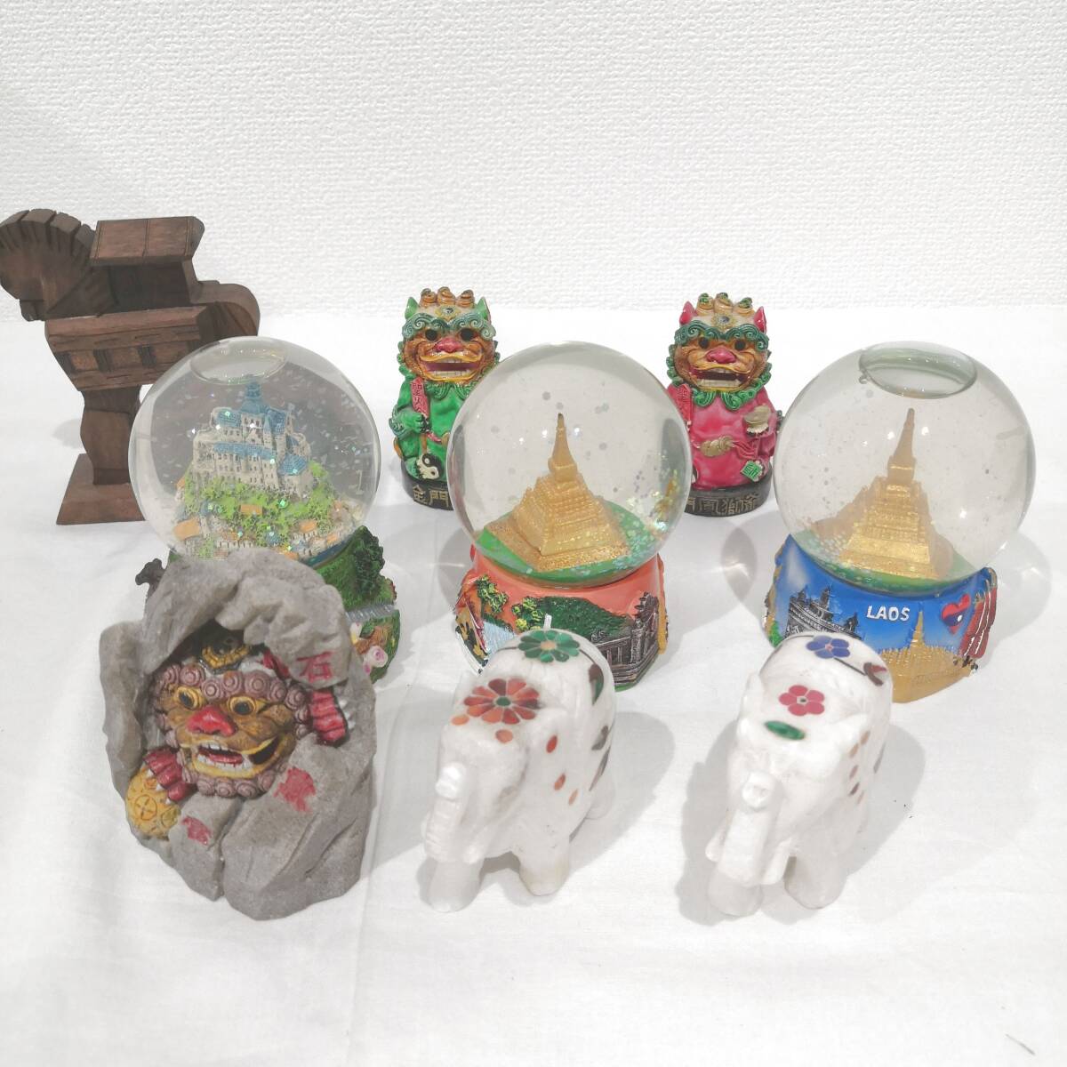 - 【1円~】工芸品 まとめセット インテリア シーサー スノードーム 木馬 置物 コレクション 木製