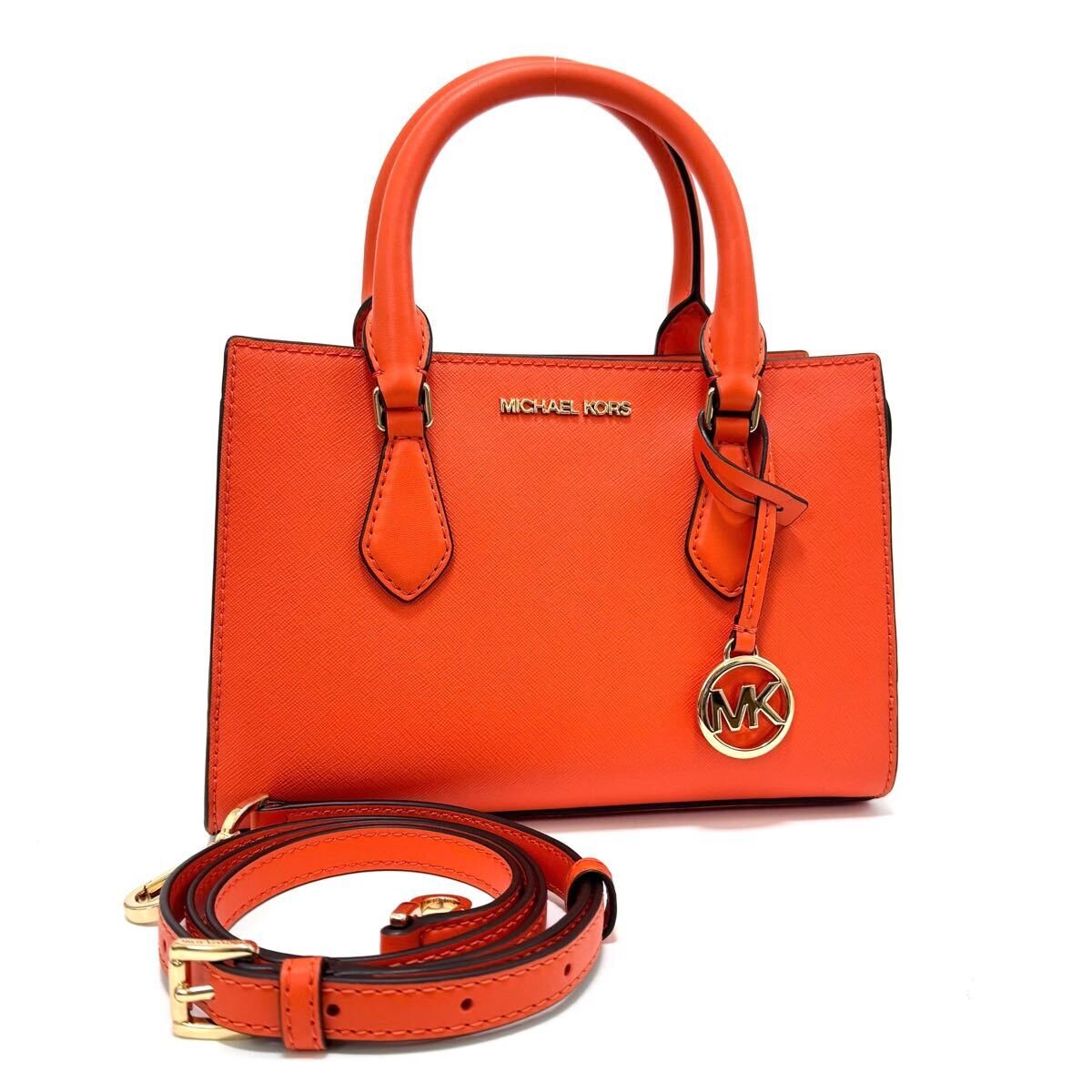 > マイケルコース シェイラ ハンドバッグ ショルダーバッグ 肩掛け 鞄 斜め掛け 2way オレンジ ゴールド レザー チャーム ロゴ MICHAEL KORS