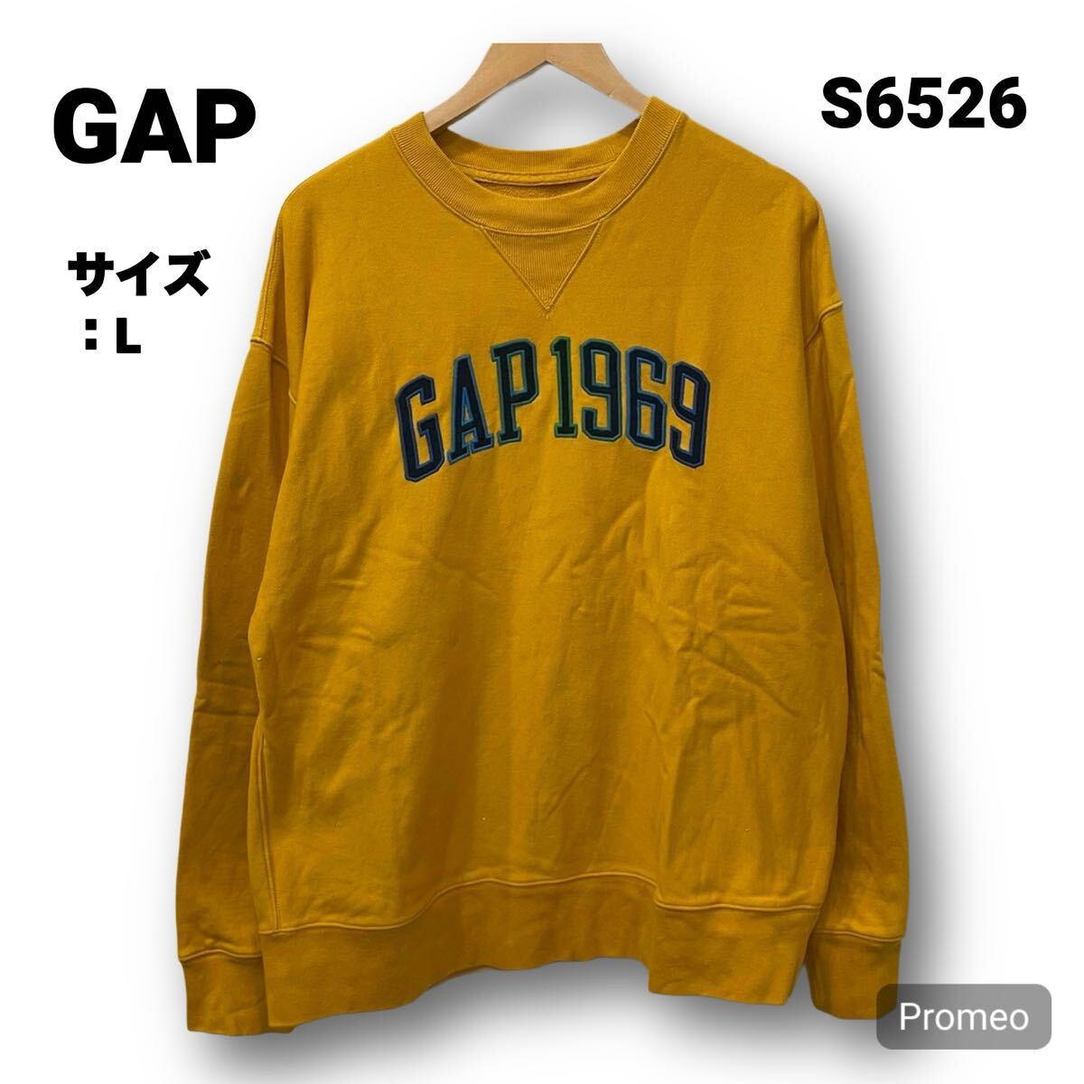 > 【S6526】 GAP ギャップ スウェット トレーナー サイズL イエロー 黄色 リバースタイプ フロントロゴ 刺繍ロゴ メンズ トップス 最落なし