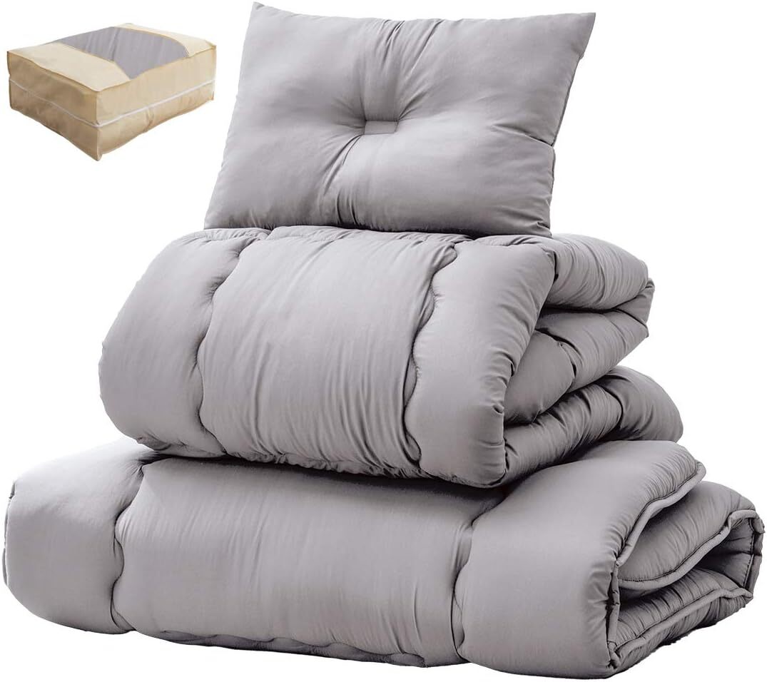 - 管16-3 未使用/新品 未開封 布団セット シングル 4点セット【高密度固綿 三層敷布団】 収納ケース付き 掛布団 敷布団 枕
