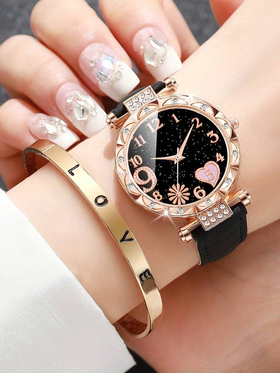 - 腕時計 レディース セット 2個セット 上品で優雅な レディース クォーツ 腕時計 + ジュエリーセット - カジュアルな服装に最