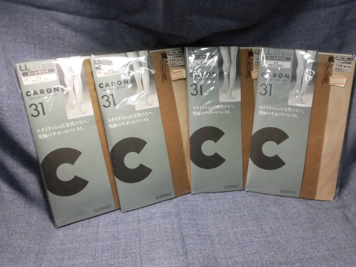 - レトロ 大きいサイズ 4足セット キャロン パンティストッキング LLサイズ マチ付 パンティ部立体設計 サポート ブラウン系 916