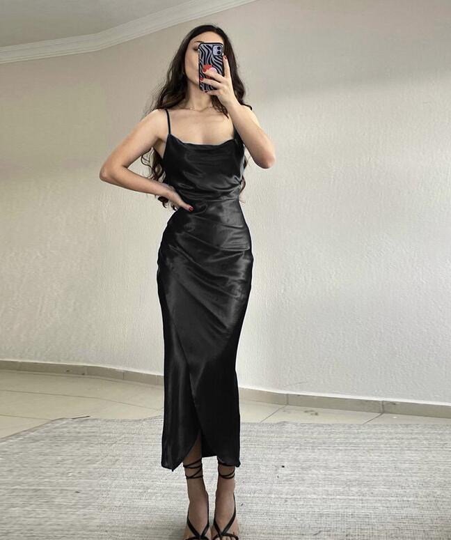 - M1018 ワンピースレディース● 着心地抜群 20代30代40代 ● キャミワンピ 光沢 black